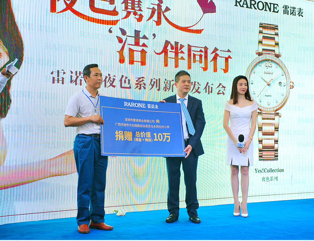 女神表示自己也非常喜歡這款新品傳達(dá)的永恒主題,表款的設(shè)計(jì)也很有意思,會(huì)是當(dāng)下都市女性青睞的腕間配飾。值得一提的是,一直熱心公益事業(yè)的雷諾表,在本次發(fā)布會(huì)上邀請(qǐng)董潔一同見證品牌方為廣西河池市大化瑤族自治縣百馬鄉(xiāng)同社村小學(xué)開展的愛心助學(xué)捐贈(zèng),在當(dāng)?shù)孛襟w以及明星董潔的見證下,雷諾表為貧困小學(xué)捐贈(zèng)10萬愛心物資及義款,用有溫度的時(shí)間將一顆顆愛心傳遞,溫暖每一個(gè)需要幫助的孩子。