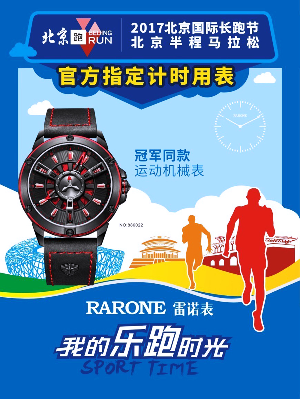 2017年4月16日上午7點,2017北京國際長跑節—北京半程馬拉松(以下簡稱“北京跑”)鳴槍開跑!北京半程馬拉松作為北京群眾體育最盛大、最具文化氣質的路跑賽事,今年也吸引超過兩萬名跑步愛好者熱情參與。雷諾表RARONE作為本屆北京跑的指定計時用表,與廣大跑友們一起樂跑京城,用速度與激情去感受北京美麗的春日時光。