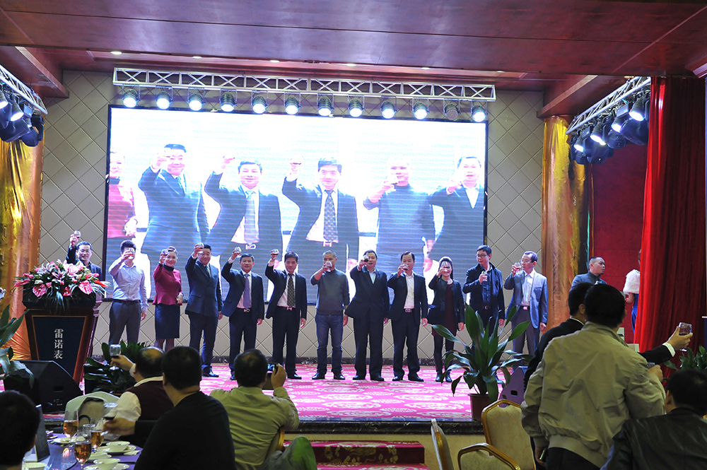 雷諾表業(yè)董事長詹西洲、總經(jīng)理詹江洲、億寶來工業(yè)區(qū)總經(jīng)理詹省洲攜集團總經(jīng)辦全體領(lǐng)導(dǎo)祝酒