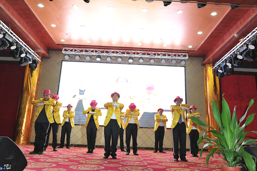 整場晚會完全由雷諾人自導(dǎo)自演。炫目的手電筒特效舞、腕表時尚微劇場、江南風(fēng)婉約舞蹈《詠春》等多彩舞蹈引人入勝;總經(jīng)辦全體高層領(lǐng)導(dǎo)親自上陣,表演精彩群舞《邁克杰克遜模仿秀》,展現(xiàn)不一樣的風(fēng)采,引爆全場氣氛;互動游戲“新春急送福”、“雷諾為你報時”、“向錢沖”等眾多好玩、有趣的節(jié)目,全員激情互動,彰顯團隊合作精神。雷諾人用智慧和創(chuàng)新,奉獻(xiàn)了一出精彩的娛樂盛宴,整場晚會貫穿著輕松、愉悅的和諧氛圍。