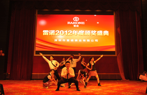 雷諾表業(yè)有限公司2012年度頒獎盛典暨聯(lián)歡晚會,于2012年12月20日晚在花園酒店盛大召開,雷諾表全體員工、終端銷售精英和重要客人共享了此次年度盛會。